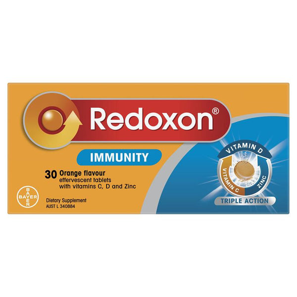 Redoxon Immunity combines high strength vitamin C, together with vitamin D and Zinc to support the body's daily immune defences and healthy immune function. Its scientific triple-action formula helps support the body's 3-lines of immune defence to help your immunity all year round and at the first sign of winter ills & chills.