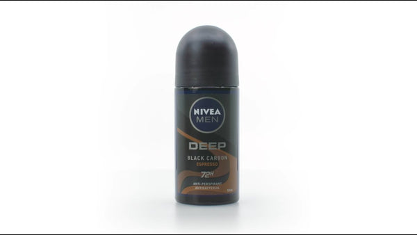 NIVEA MEN Deep Espresso Anti-Perspirant Roll-On Deodorant protects your skin from sweat and bacteria for a long-lasting dryness and a clean skin feel, as if you've just stepped out of the shower. The effective anti-bacterial formula, with Charcoal, acts powerfully without leaving any black residue and is complemented by a modern and masculine Espresso fragrance. NIVEA MEN Deep Espresso Anti-Perspirant Roll-On Deodorant has reliable 48 hour protection so you can feel fresher for longer. Get the reliable protection and care that you deserve! The skin tolerance of this anti-perspirant has been dermatologically proven.