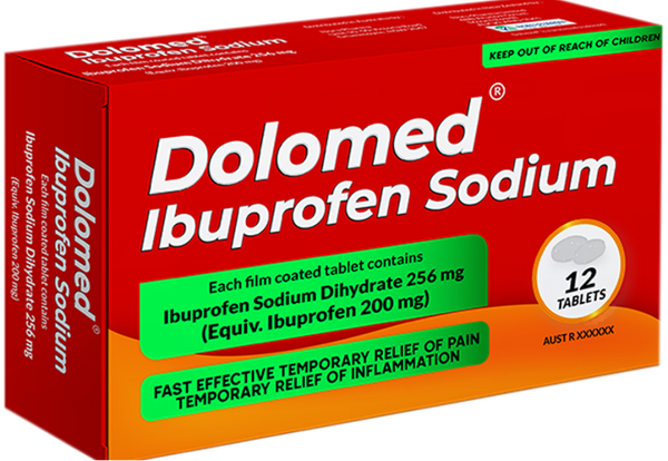 Dolomed Ibuprofen Sodium Pain Relief provides temporary relief of pain and / or inflammation associated with headache, migraine headache, tension headache, muscular pain, symptoms of cold & flu, period pain, dental pain, sinus pain, back pain or arthritic pain. It also reduces fever.
