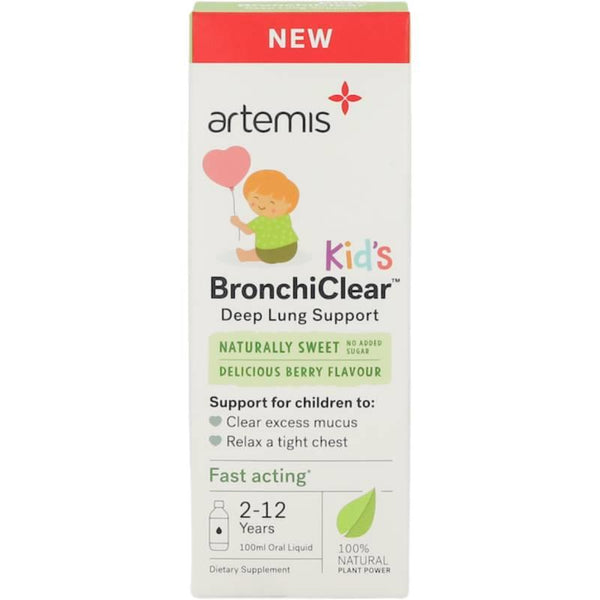 Artemis Kid's BronchiClear™ Deep Lung Support is specifically formulated for children from ages 2-12 and provides powerful plant support to loosen lung mucus and support open airways for relaxed breathing.