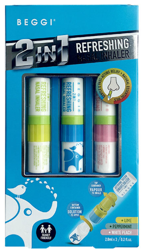 Beggi Nasal Inhalers give you fast and temporary relief from blocked noses due to colds in seconds. These double ended sticks provide vapour to inhale on one end and solution to apply to the other.