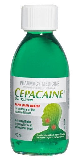 Cepacaine is used for temporary, local anaesthetic action and topical antibacterial effects in minor sore throat and minor mouth infections. Cepacaine is also indicated for temporary relief of the pain and discomfort of minor throat irritations, the discomfort following dental procedures and minor surgery of the mouth.