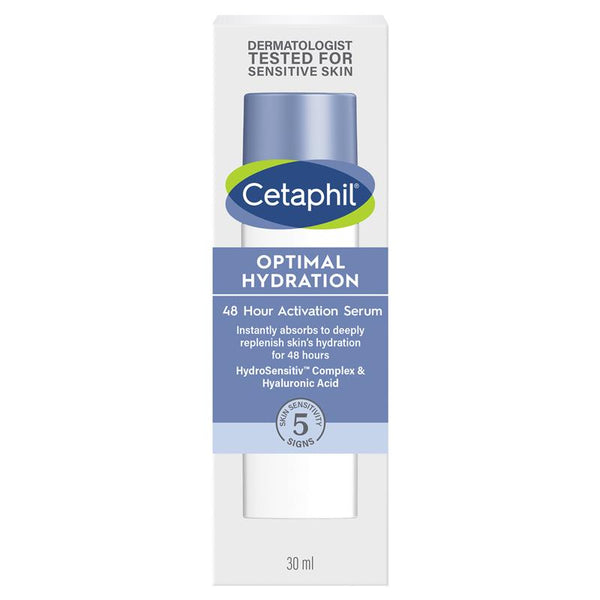 Cetaphil Optimal Hydration 48 Hour Activation Serum absorbs fast to soothe and deeply replenish your skin's hydration for 48 hours. This lightweight facial serum won't clog your pores and is also free of fragrance, parabens or animal-origin ingredients.