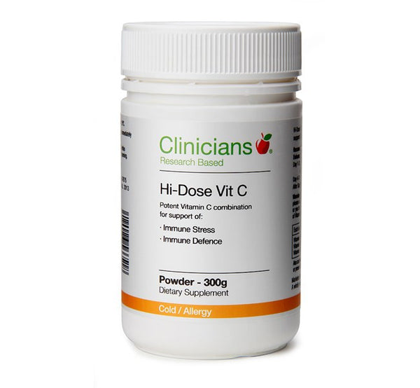 Clinicians Hi-Dose Vit C has been designed to support the body’s defenses against winter ills and chills. A specialised research-based buffered formulation containing 2 forms of vitamin C, (sodium ascorbate and ascorbic acid) that may support and enhance immune function during times of stress.