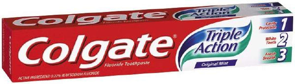Maximum cavity protection. Fights plaque acids that cause cavities.Colagte triple cool stripe combines its unsurpassed fluoride efficacy with the breath freshing of a gel. Mint flavour gives a triple cool feeling of freshness.
