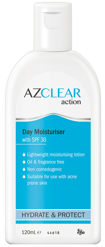 Azclear Action Day Moisturiser is a lightweight moisturising lotion suitable for use with acne prone skin. The oil-free formula hydrates skin won't block pores and the SPF30 broad spectrum sunscreen helps to protect the skin from the damaging effects of the sun.