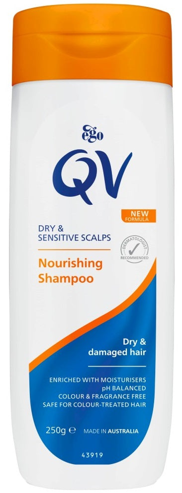 QV Nourishing Shampoo provides a moisture boost to dry hair, specifically designed to enrich hair and help hydrate dry, sensitive scalps, whilst cleansing.