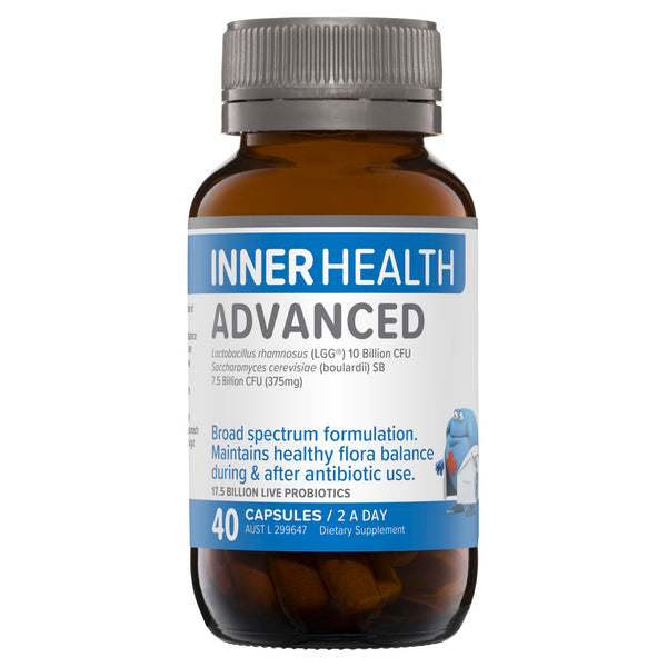 Inner Health Advanced has been scientifically formulated with two of the world’s most researched probiotic strains. Dosed at a scientifically validated strength Inner Health Advanced may support the broad spectrum restoration of intestinal flora and support healthy bacterial balance after antibiotic use.