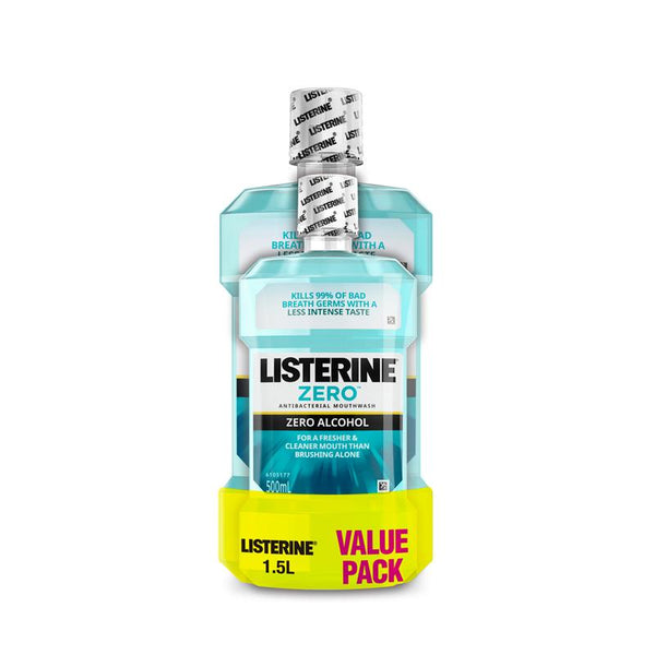 Listerine Zero, with zero alcohol has a less intense taste and gives you a deeper whole mouth clean than brushing alone. It: - Provides long lasting fresh breath. - Kills...
