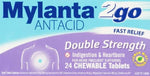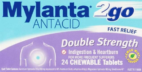 Mylanta Double Strength Tablets, each tablet contains: Magnesium Hydroxide 400mg, Aluminium Hydroxide-Dried 400mg, Simethicone 30mg.