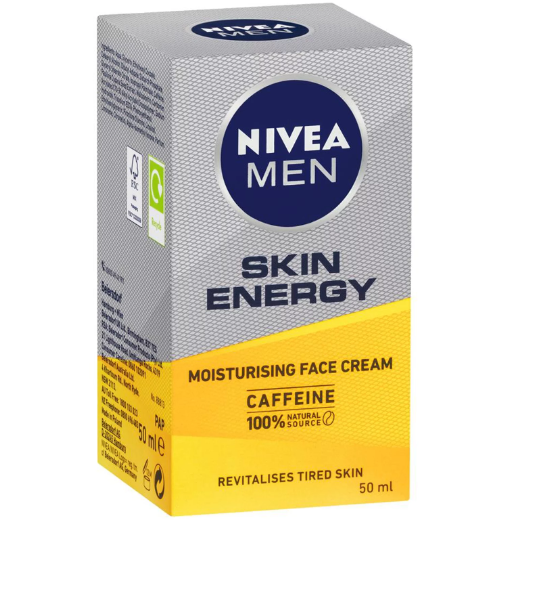 NIVEA MEN Active Energy Moisturiser cares for men’s skin intensely without leaving any residue. It fights signs of tiredness and provides long-lasting vitalisation to provide healthy looking skin. The fast-absorbing, non-sticky formula helps improve skin condition and instantly provides the skin with refreshing moisture. Simply apply all over your face and neck, avoiding the eye and lip areas. The skin compatibility of this revitalising face cream has been dermatologically approved.