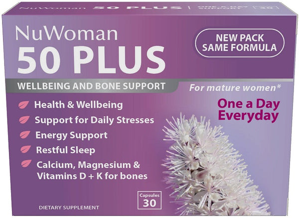 In a convenient one-a-day formula NuWoman 50 PLUS is a comprehensive formula of ingredients to support normal temperature control, restful sleep, normal libido, mental clarity, healthy mood and energy whilst supporting bone health.
