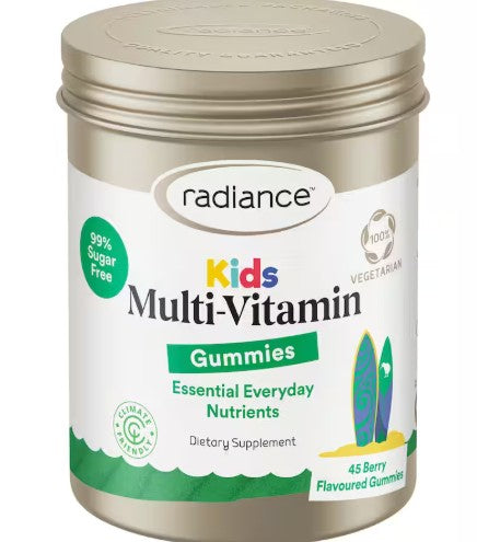 Radiance Kids Multi-Vitamin Gummies make it easy to top up your kids diet with the essential nutrients that are important for everyday energy and wellbeing. Childhood is a time of rapid growth and development and this requires a regular intake of vitamins and minerals. Maintaining your child’s healthy diet every day can be a challenge, but with Radiance Kids Multi-VItamin Gummies it’s easy to provide the extra nutrition they need.