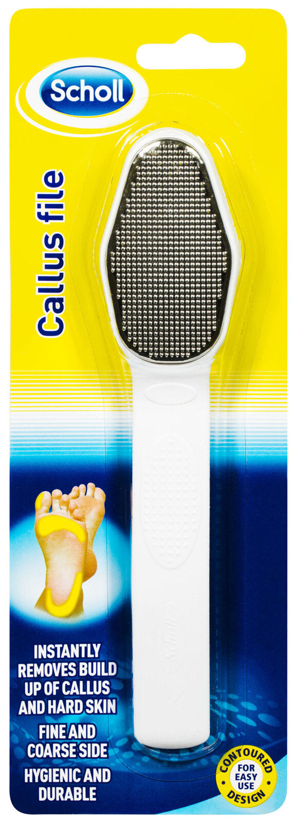 Scholl Callus File effectively removes hard skin and callus due to its different abrasive surfaces. With its specially designed handle, any area of the foot can be treated without difficulty.