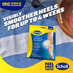 Scholl ExpertCare Exfoliating Heel Peel for softer and smoother heels for up to 4 weeks.