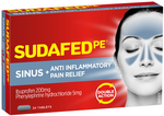 Sudafed PE Sinus + Anti-Inflammatory pain relief provides double action relief from sinus pain and headaches, cold and flu symptoms and blocked or runny noses.