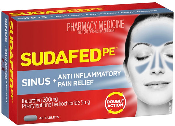 Sudafed PE Sinus + Anti-Inflammatory pain relief provides double action relief from sinus pain and headaches, cold and flu symptoms and blocked or runny noses.