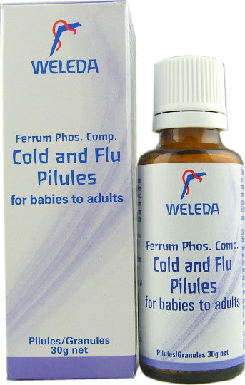 Colds & ‘flu symptom relief Feverish colds, influenza. Also see INFLUDO (Pharmacy only) Cold & Flu Pilules (Ferrum Phos. Comp) is a preparation for colds and flu that does not suppress symptoms and is recommended for babies, toddlers, children and adults. Recommended to be used together with Echinacea/Thuja Comp. Rationale Aconite helps to control the inflammation and reduce excessive fever Bryonia acts on the mucous membranes of the head and chest where it helps control fluid processes. It also helps alleviate pain in aching muscles